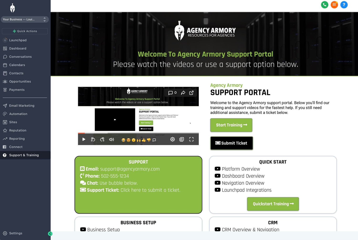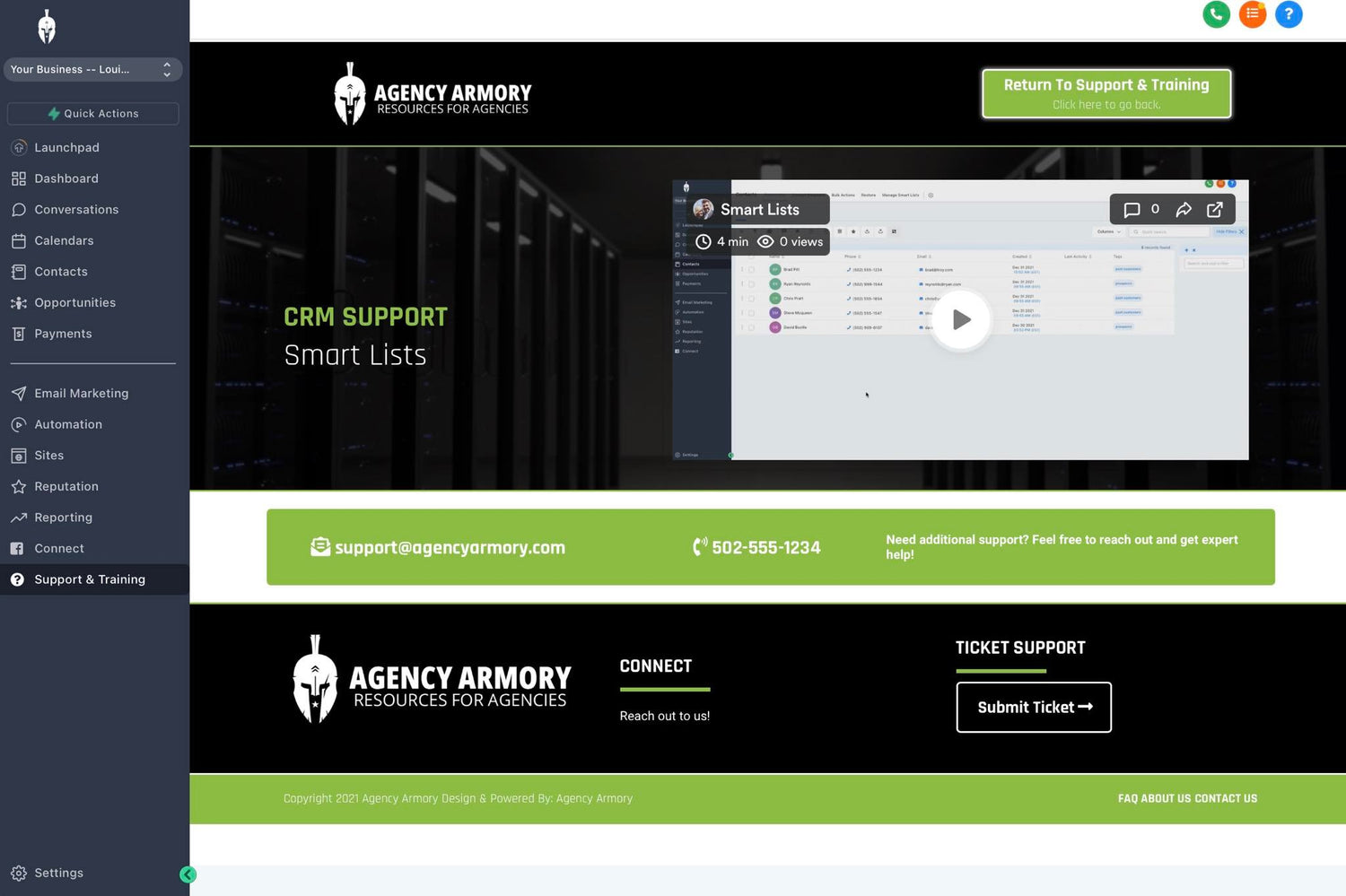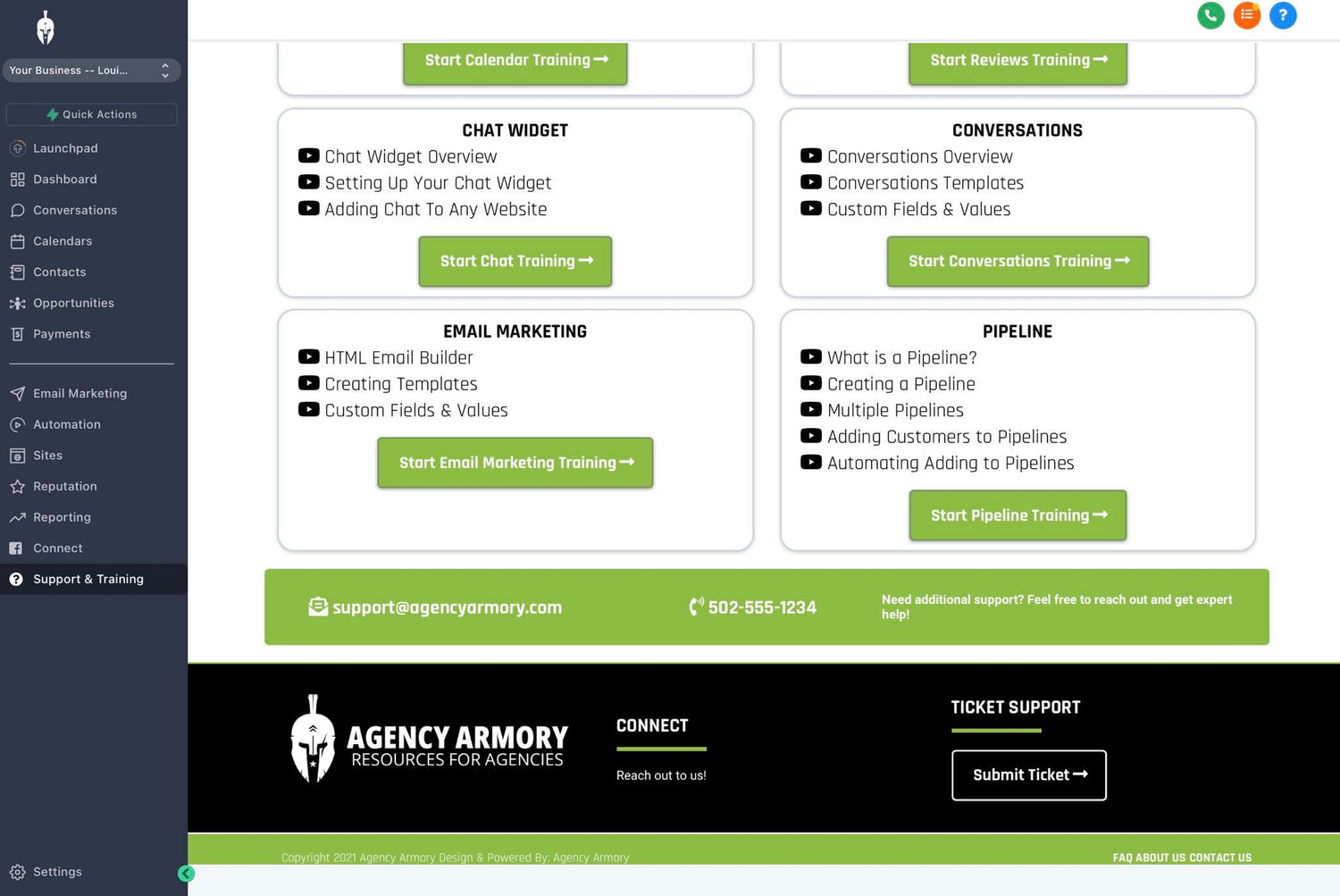 We put together a white label snapshot that has all of those things in one that you can brand to your agency for your customers. You can import the snap and run a Support and Training menu tab from within your GHL account.